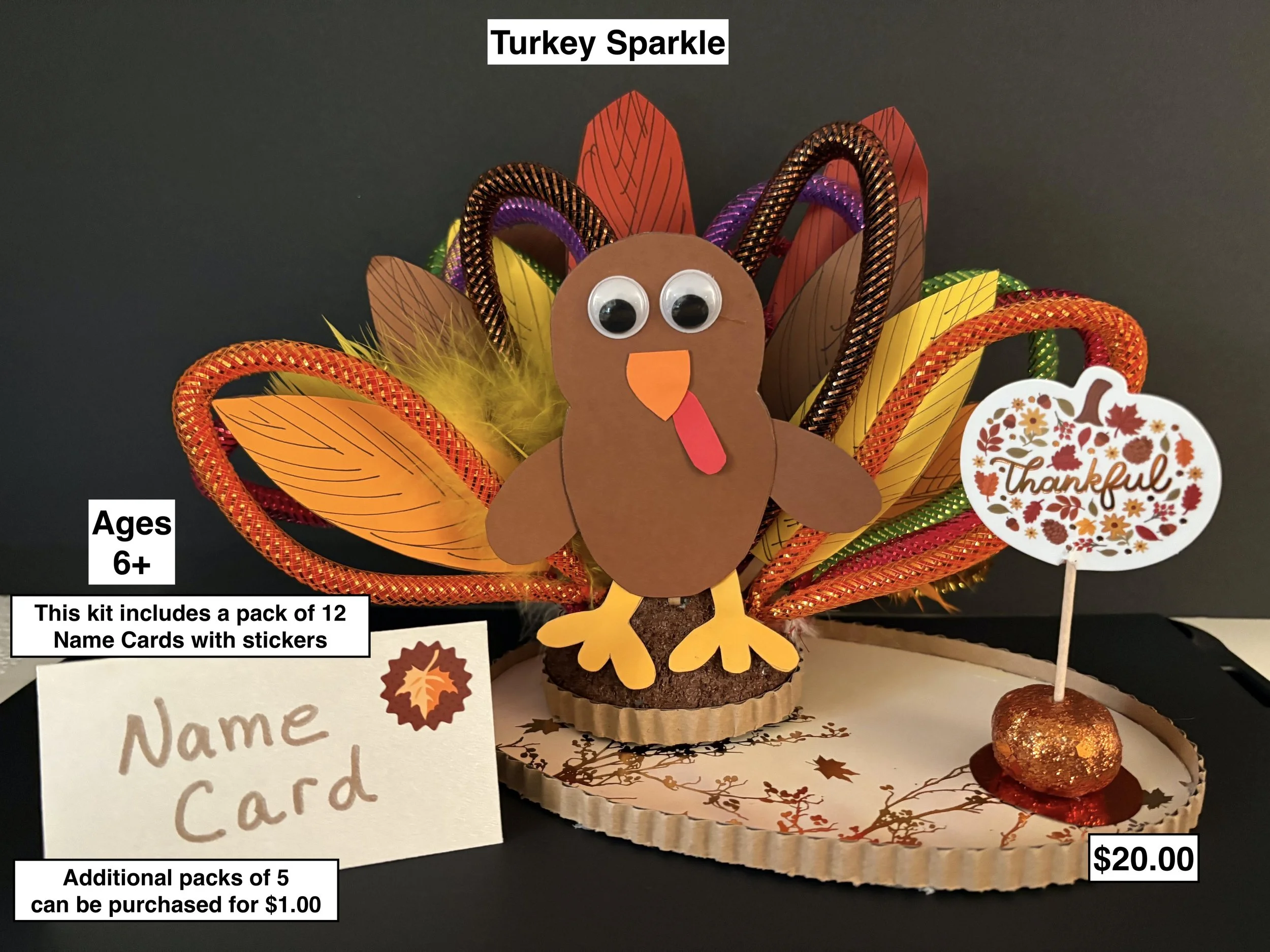 This would look great in the middle of the kids’ table on Thanksgiving! It comes with 12 name cards for the kids to create as well. Extra packs of 5 each for $1.00 are available.