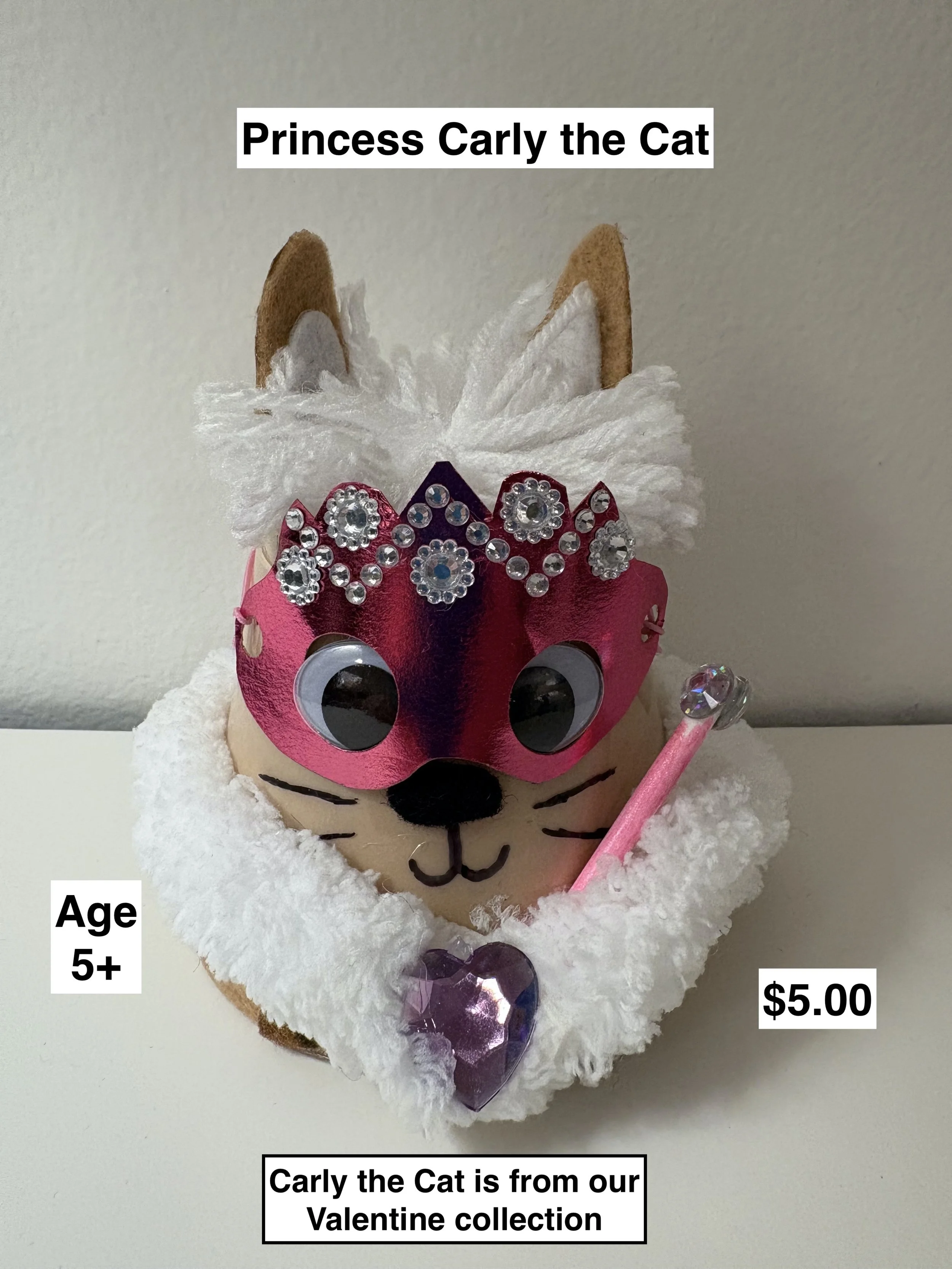 Carly the Cat is from our Valentine Collection. We dressed her as a Princess for Halloween.